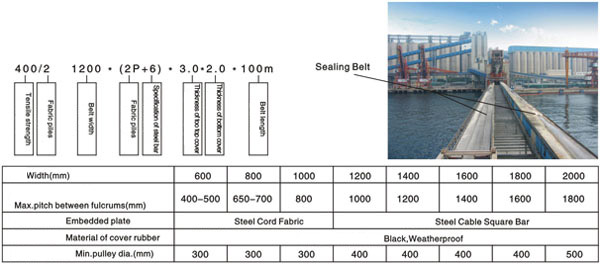 Sealing belt is used as protection cover for unloading coveyor, reproduting machine and other unloading material equipment.